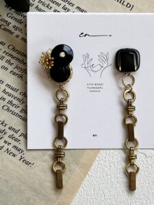 揺れるタイプのアクセサリーで、縦ラインを意識したデザイン