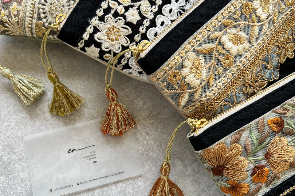 インド刺繍リボンを大胆に使ったマルチポーチ