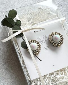 【en】では、ハンドメイドアクセサリーや、刺繍リボンを使った小物などを販売しております。個性的なボタンなどのヴィンテージパーツや、長くお使いいただける金具を厳選し、素材にこだわった逸品です。いくつにもなっても、素敵な女性でいられるお手伝いができるよう、心ときめくものをお届け。ご自身用はもちろん、ギフトにもおすすめです。