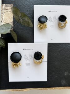 en 【en】では、ハンドメイドアクセサリーや、刺繍リボンを使った小物などを販売しております。個性的なボタンなどのヴィンテージパーツや、長くお使いいただける金具を厳選し、素材にこだわった逸品です。いくつにもなっても、素敵な女性でいられるお手伝いができるよう、心ときめくものをお届け。ご自身用はもちろん、ギフトにもおすすめです。 en