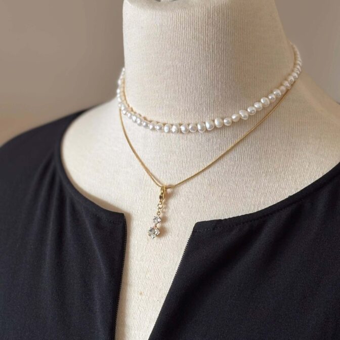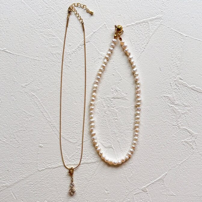 バロックパールと極細スネークチェーンの2連ネックレス|上品でエレガントな3wayデザイン