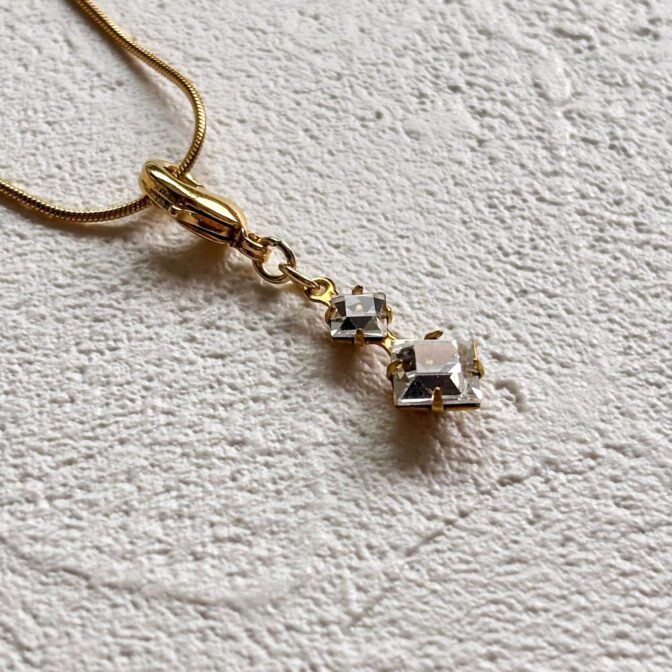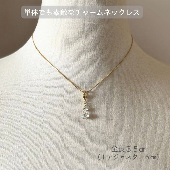 チャームはヨーロッパヴィンテージのラインストーンで取り外し可能なので、シンプルなチェーンネックレスとしてもお使いいただけます。