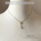 ネックレスとしては短めで、デコルテラインに沿うミニマルなバランスが魅力です。