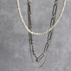 小粒パールとシルバーチェーンの2連ネックレス|上品で軽やかな2wayデザイン