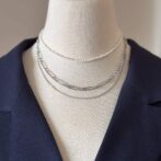 開きのあるトップスやシャツの襟元にすっと馴染みスタイルを上品に引き締めてくれます。