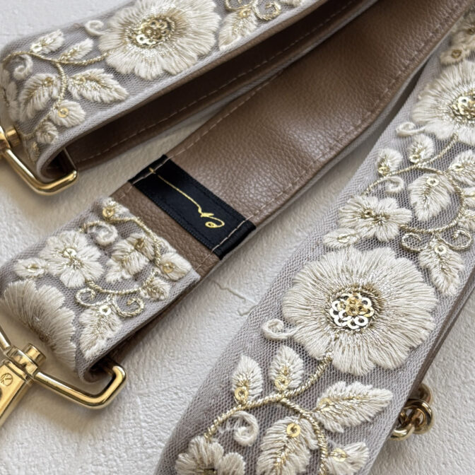 インド刺繍リボンのショルダーストラップ|太め幅×高級感|ベージュ