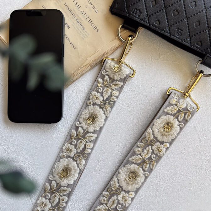 バッグを華やかに格上げする刺繍リボンのショルダーストラップ