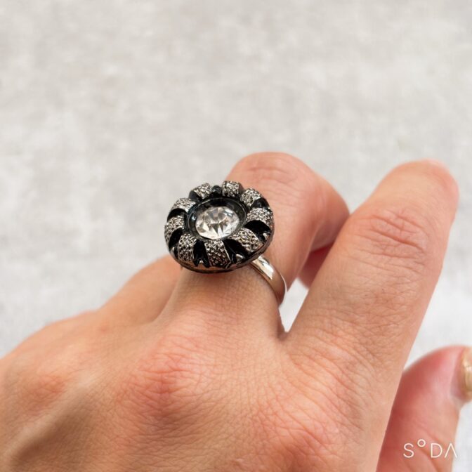 ドイツ製ヴィンテージガラスのリング|13号・本ロジウム