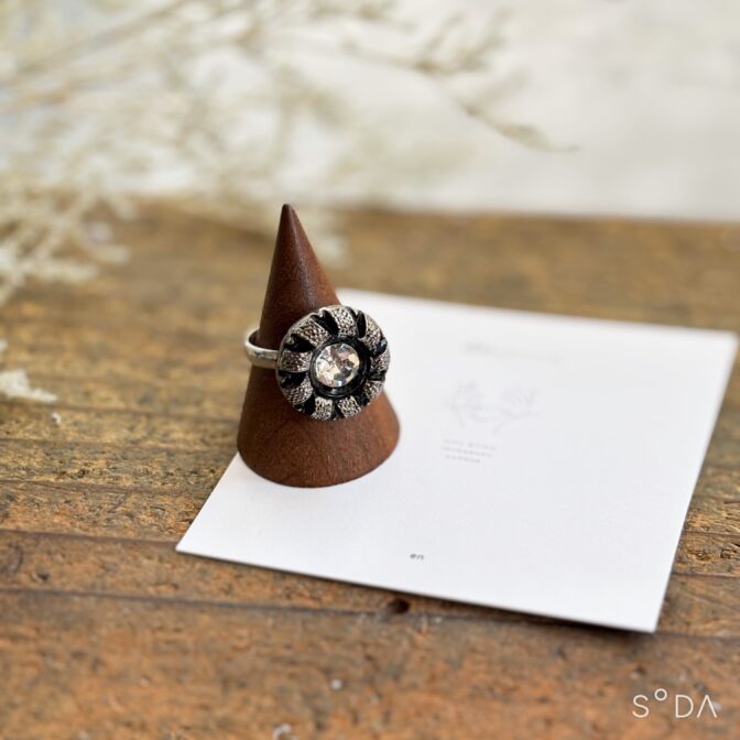 透明感とクラシカルな魅力を放つ、ドイツ製ヴィンテージガラスを使用した一点ものリング。