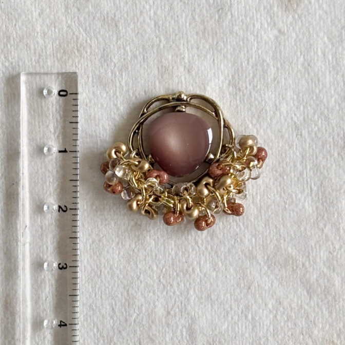 3色ビーズとヴィンテージボタンのレトロ可愛い大人ピアス/イヤリング