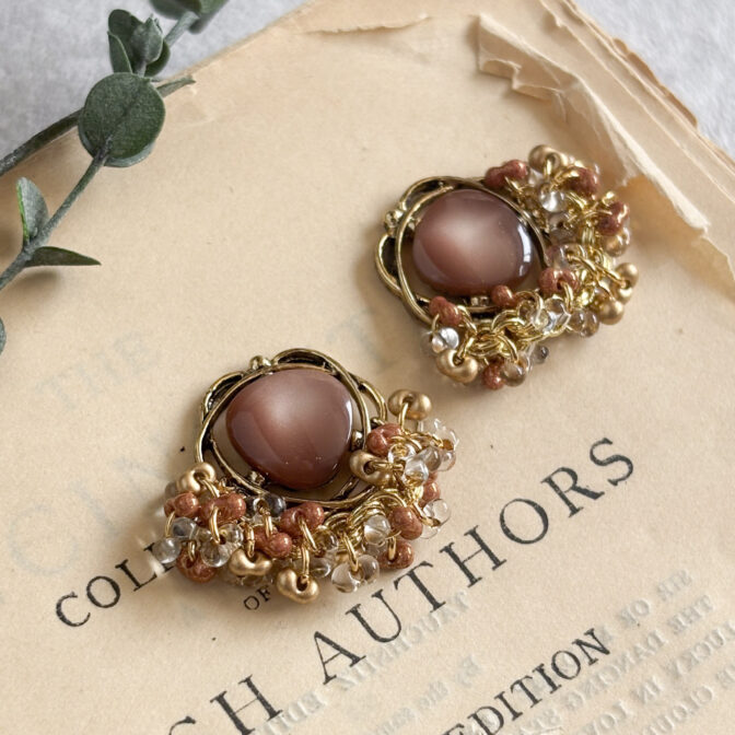 #ヴィンテージイヤリング #ジャパンヴィンテージ #レトロアクセサリー #ファルファーレビーズ #一点ものアクセサリー #大人カジュアル #ハンドメイドピアス #個性的イヤリング