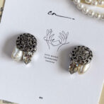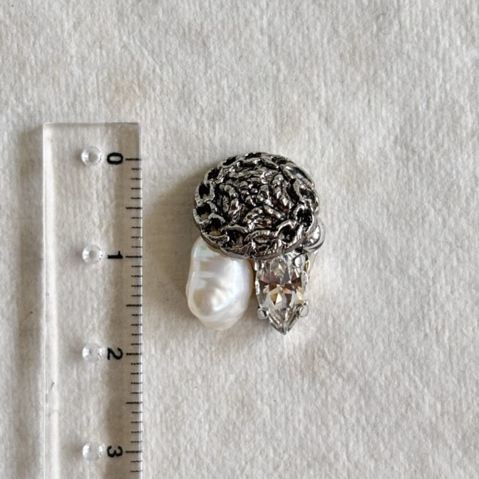 ジャパンヴィンテージのシルバーボタンと、上質な淡水パールを組み合わせたクラシカルな小ぶりアクセサリーです。
