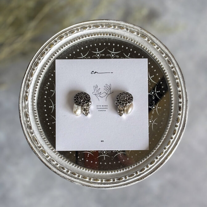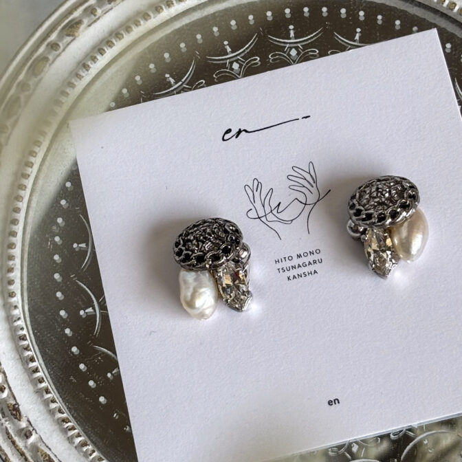 en 【en】では、ハンドメイドアクセサリーや、刺繍リボンを使った小物などを販売しております。個性的なボタンなどのヴィンテージパーツや、長くお使いいただける金具を厳選し、素材にこだわった逸品です。いくつにもなっても、素敵な女性でいられるお手伝いができるよう、心ときめくものをお届け。ご自身用はもちろん、ギフトにもおすすめです。 en